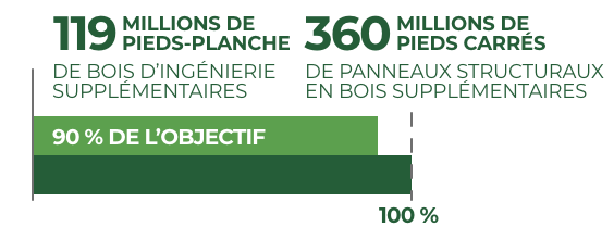 Dans un environnement de demande restreinte et de concurrence intense entre les matériaux de construction, le SLB doit évoluer et optimiser sa stratégie, ses priorités et ses tactiques. L’objectif est clair : élargir le rôle du bois d’œuvre dans l’enviro-nnement bâti et générer une demande supplé-mentaire annuelle de 2,9 milliards de pieds-planche d’ici 2035 sans augmenter le taux de cotisation.
